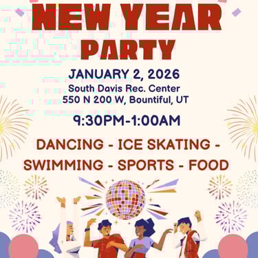Friday, January 2nd: Stake New Years Party - South Davis Rec Center 9:30 pm - 1:00 am.